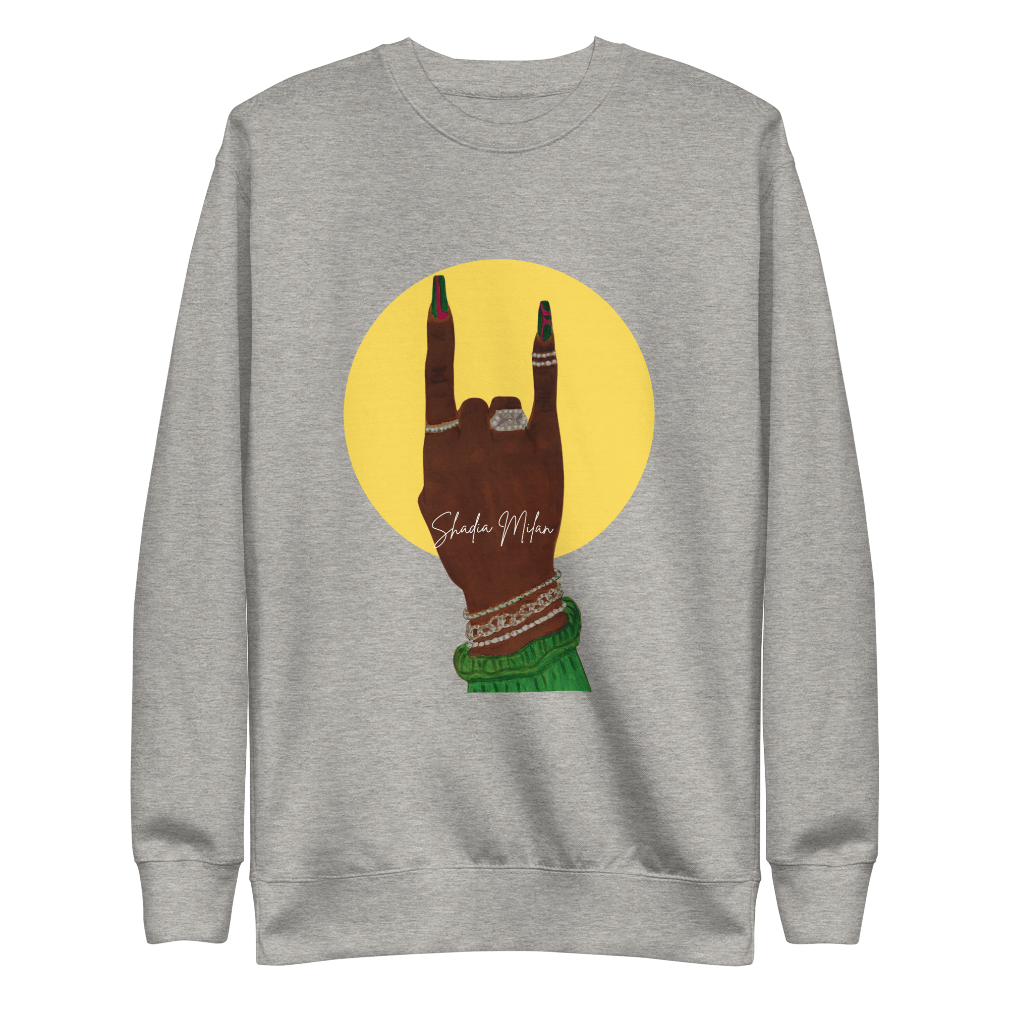 Rock a classic sweatshirt silhouette with ribbed crew neck, long sleeve cuffs, and a flat hem. Layer it up or wear it on its own. Featuring art by Shadia Milan, with the soft fleece inside and comfortable fit, it’s sure to become your favorite everyday sweater right away! Double-needle stitched rib collar, cuffs, and hem.
