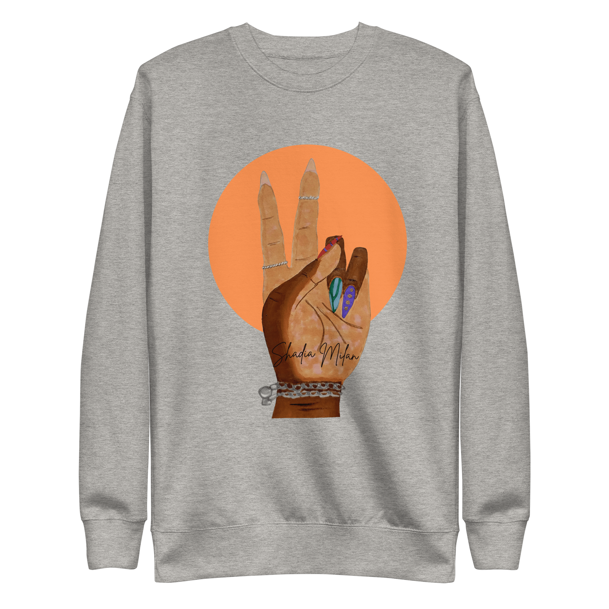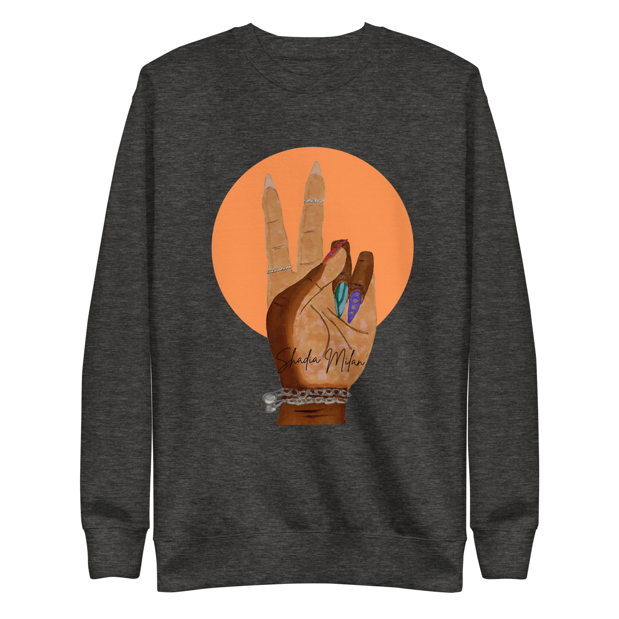 Rock a classic sweatshirt silhouette with ribbed crew neck, long sleeve cuffs, and a flat hem. Layer it up or wear it on its own. Featuring art by Shadia Milan, with soft fleece inside and comfortable fit, it’s sure to become your favorite everyday sweater right away! Double-needle stitched rib collar, cuffs, and hem.